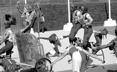 在奥运村,东道主用诙谐而又活力四射的文艺表演欢迎来自世界各地的运动员们。 本报记者 姜 范摄
