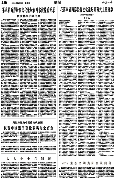 在第八届两岸经贸文化论坛开幕式上的致辞