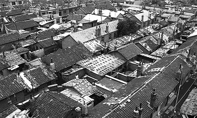 ▲ 有1万多名居民的古城社区是辽宁省抚顺市最大的棚改新区。2005年以前,这里是抚顺西露天矿工人居住的棚户区,“冬天墙漏雨,晴天一身灰,雨天两脚泥,接水等半夜”,因“脏、乱、差”而闻名于当地。图为棚改前低矮破烂的棚户区。