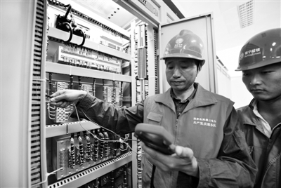 7月25日,电力工人在宁夏中宁县一家大型冶炼企业的变电站内测量部分电力设备的电流和电压。随着夏季用电高峰的来临,为保障工厂、企业的正常生产和运行,宁夏电力公司专门组织“塞上电力党员服务队”深入到厂房车间、变电站,检查电力输送情况,维护电力设备设施,为各企业、单位的夏季生产工作创造良好的用电环境。 新华社记者 彭昭之摄