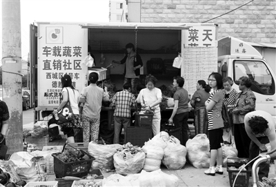 退休以后,家里买菜的活就成了李桂英的日常工作。可是,社区周边没有价格实惠的蔬菜销售点,去哪儿买安全、新鲜的蔬菜、水果成了李阿姨最头疼的事。“以前到周边的菜市场买菜,要坐上三四站的公交车,特别不方便,赶上阴天下雨就更麻烦了。”李桂英说,“现在好了,流动蔬菜车就停在楼下,方便不说,菜也新鲜又便宜。”