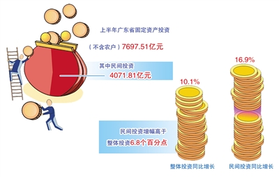 数据显示,广东民间资本过去进入的行业领域较为有限,主要集中在房地产业和制造业。从今年上半年统计数据来看,广东省民间投资完成4071.81亿元,其中房地产业占36.4%,制造业占35.4%。有评论认为,此次广东将许多原本处于垄断行业的重点建设项目拿出来对民资开放,有利于促进公平健康的市场竞争环境,激发民间投资增长的内生动力。