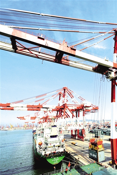 营口港务集团繁忙的集装箱作业码头是中国外贸进出口飞速发展的一个缩影。2011年我国进出口贸易总额居世界第二位,其中货物出口额居世界第一位,货物进口额居世界第二位。国际金融危机爆发以来,在世界主要经济体增长明显放缓甚至面临衰退时,我国经济依然保持了相当高的增速并率先回升,成为带动世界经济复苏的重要引擎。