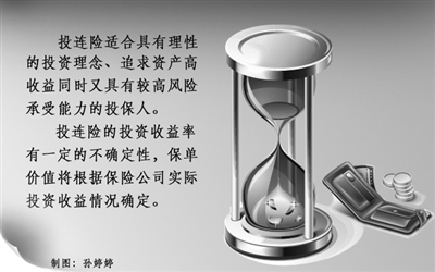 刘云飞认为,投连险适合具有理性的投资理念、追求资产高收益同时又具有较高风险承受能力的投保人。“投资连结保险和资本市场联系紧密,是一个非常专业和复杂的产品类型,对一个普通的投保人来说,全面认识了解投连险并不是一件容易的事,投保人要充分利用专家理财的优势。”他提醒投保人在追求高收益的同时也要有承担投资损失的能力。
