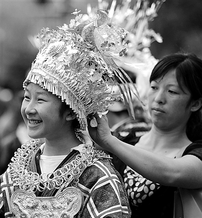 “2012贵州·剑河仰阿莎文化节”日前在贵州省黔东南州剑河县举行,共举行民族风情巡游及展示等10余项活动。图为苗族同胞在街头进行民族风情展示。 新华社记者 陶 亮摄