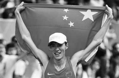 图③ 8月4日,在2012年伦敦奥运会田径男子20公里竞走比赛中,中国选手陈定夺得冠军,并打破奥运会纪录。 新华社记者 郭 勇摄