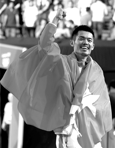图④ 8月5日,在伦敦奥运会羽毛球男单决赛中,中国选手林丹蝉联奥运会男单冠军。 新华社记者 任正来摄
