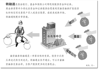 所谓转融通,是指由银行、基金和保险公司等机构提供资金和证券,再由券商等中介将这些资金和证券提供给愿意利用融资融券扩张投资杠杆的信用交易客户买入或卖空股票。在欧美成熟市场,转融通制度非常普遍。