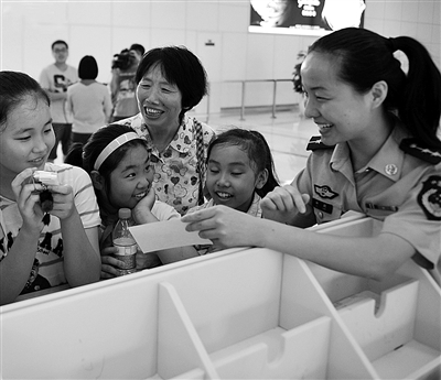 暑期,浙江省公安边防总队杭州边防检查站为结对贫困学子举办警营开放日活动。10余名来自杭州市上城区小营街道、紫阳街道的中小学生在老师及家长的带领下,参观位于杭州萧山国际机场的边检执勤现场,近距离体验“国门卫士”的工作和生活环境。图为中小学生在边检执勤现场聆听宋琳琳科长讲解通关手续。 范加龙摄