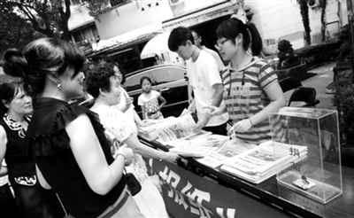 近日,浙江工贸学院“红马甲”爱心义卖志愿服务实践队走进温州鹿城区蒲鞋市方园社区,开展报纸义卖、打扫卫生等活动,受到当地居民的欢迎。