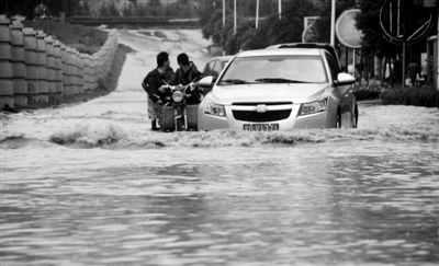 一是北京的管道标准低。现在一般的路面的排涝,大概是按1至2年一遇、每小时36毫米至40毫米雨强来设计;重点路段是按照3至5年一遇、每小时56毫米的雨强来设计。这样,一小时雨强超过20毫米就很容易发生积涝,特别是低洼地,如果一小时50毫米的话,积涝会很明显。