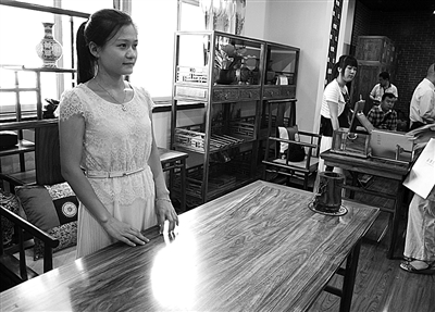 “大叶黄花梨品鉴会”近日在中国红木古典家具精品示范馆举行。大叶黄花梨原产地为印度尼西亚,由于在外观和形色上酷似香枝木(黄花梨),且多项指标与降香黄檀(海南黄花梨)接近,故被市场人士称之为“大叶黄花梨”。图为中国红木古典家具精品示范馆内大叶黄花梨的展示点。 实习生 李淑姮摄