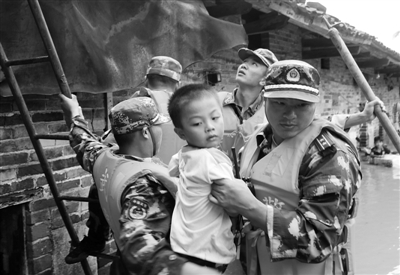 8月18日,武警广西总队钦州市支队官兵在钦北区大直镇灾区转移被困群众。据广西壮族自治区民政厅救灾处介绍,截至8月18日16时30分统计,广西玉林市、北海市、防城港市、钦州市、南宁市、崇左市等6市26县(市、区)受灾,灾害累计造成受灾人口126.15万人,已紧急转移安置人口6.86万人。 李斌辉摄(新华社发)