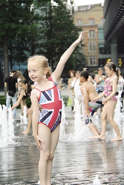 图② 近日,整个欧洲出现罕见高温,有的地方高达38摄氏度,英国也是高温不断,人们纷纷走到户外享受难得的日光浴,街头的喷泉更是成为孩子嬉戏的乐园。