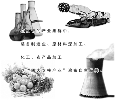 一个个极具特色的产业集群,是中央实施东北振兴国家战略以来辽宁经济发展的一大亮点。在辽宁的产业集群中,装备制造业、原材料深加工、化工、农产品加工这“四大支柱产业”遍布自主品牌。2011年,辽宁工业产业集群整体销售收入突破1.9万亿元,其中,自主品牌是重中之重。