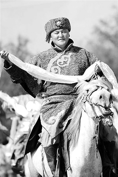身着盛装的蒙古族群众手捧哈达,用多彩文化活动迎八方游客。 (资料图片)
