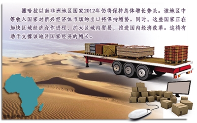 综上所述,撒哈拉以南非洲地区国家2012年的经济增长虽会出现局部下降,但仍将保持总体增长势头。该地区中等收入国家对欧洲出口将会减少,但是对新兴经济体市场的出口,尤其是对中国、印度的出口将保持增势。同时,撒哈拉以南非洲地区国家正在加快区域经济合作进程,扩大区域内贸易,并根据各自国情推进经济改革。这将有助于支撑该地区国家经济的增长。