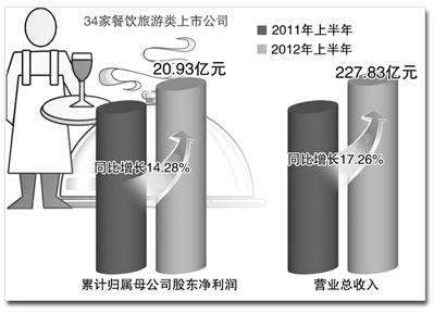 从半年报披露的情况看,餐饮旅游类上市公司上半年业绩比较稳定。统计数据显示,34家餐饮旅游类上市公司今年上半年累计营业收入227.83亿元,同比增长17.26%;实现归属母公司股东净利润20.93亿元,同比增加14.28%。