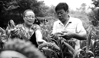 日前,河北迁安市建昌营镇太平村绿色杂粮基地内,农民致富带头人高丽萍(左一)正在给农民讲解农作物管理知识。