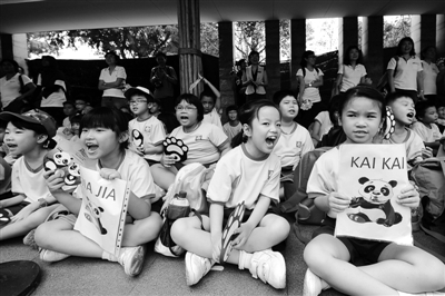 9月6日,儿童在新加坡动物园等待大熊猫到来。来自卧龙中国保护大熊猫研究中心的大熊猫“武杰”“沪宝”(新加坡征名为“凯凯”“嘉嘉”)6日抵达新加坡,开始为期10年的国际科研交流与合作。 新华社发
