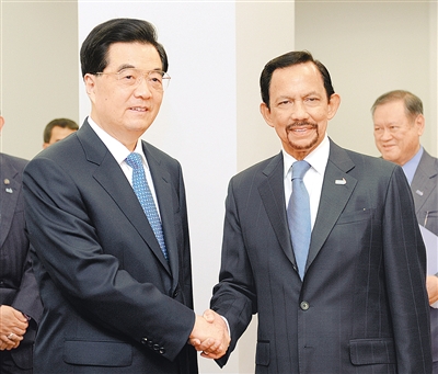 胡锦涛表示,中文关系保持良好发展势头。中方重视同文莱的睦邻友好合作关系。当前,文莱正在实施经济多元化发展战略,中国也在加快产业调整升级,加大对外投资。两国应该将双边合作同各自特点、优势、发展战略紧密结合起来,相互支持,共同发展。中方愿同文方一道努力,保持高层交往,加大经贸和投资合作,推进基础设施建设项目,积极开展能源合作,扩大人文交流,推动中文关系取得新的更大发展。