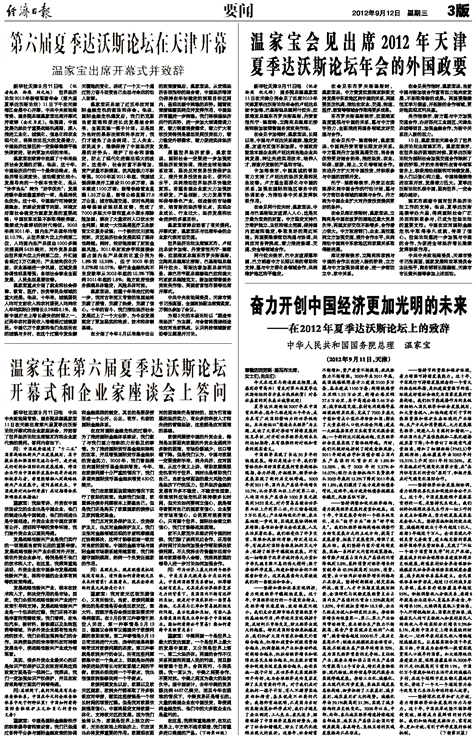 温家宝在第六届夏季达沃斯论坛 开幕式和企业家座谈会上答问