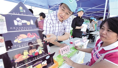 9月15日,2012年全国科普日活动在全国范围广泛开展。全国县级以上科协及所属学会(协会)、科普教育基地、社区、农技协等将组织开展5000多项重点科普活动。图为当日来自天津医科大学的专家(左)在天津文化中心向市民介绍“营养金字塔”。