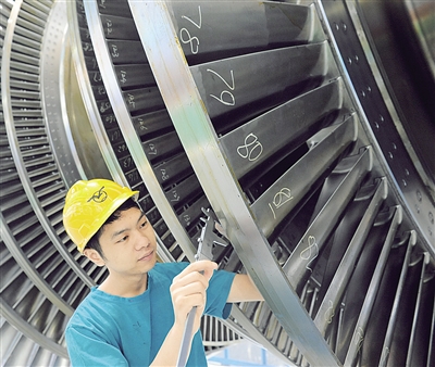 图③:东方汽轮机有限公司工人正在检测120万千瓦核电转子