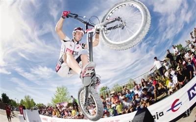 9月16日,在西班牙首都马德里,一名选手在“自行车节”上表演。