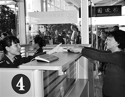 9月17日,呼和浩特边检站工作人员为旅客办理出境手续。当日,首条呼和浩特至香港定期直飞航线正式开通,这条航线由香港航空公司波音737-800型客机执飞,每周一、三、五、日共四班。这条航线的开通,结束了呼和浩特与香港之间只有季节性包机的历史,并且减少飞机经停或中转环节。 新华社记者 于 嘉摄