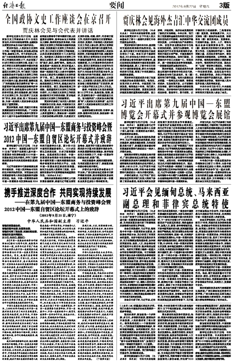 习近平出席第九届中国—东盟商务与投资峰会暨 2012中国—东盟自贸区论坛开幕式并致辞
