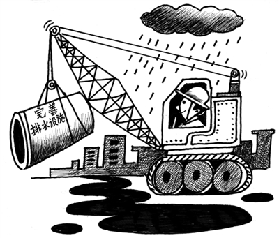 比如,人们不愿意看到污水井“落户”在地势较高的地方,而离其不远处就是一片泽国的场面。每当这种情况出现时,就会看到环卫工人不辞劳苦地将这些“安家”不到位的雨水“赶”到污水井中去。由于排水设施不到位,道路下凹的最低处无论大雨小雨都有很多积水,车辆在这里“中埋伏”的事件频发,雨后百姓行路难的问题普遍存在。这些问题的出现固然与气象条件有关,而市政建设不到位是重要原因。