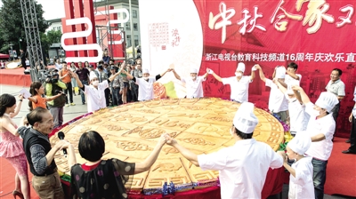 9月30日,一块超大月饼亮相浙江杭州运河文化广场,吊足众人胃口。