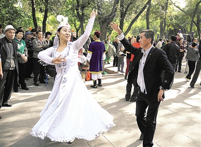 9月30日,乌鲁木齐市人民公园成了欢乐的海洋,人们载歌载舞庆祝中秋佳节,祝福伟大祖国。