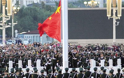 10月1日,群众在天安门广场观看升旗仪式。当日,来自全国各地的8万余名群众聚集在北京天安门广场,观看升国旗仪式,在中华人民共和国成立63周年纪念日的第一抹晨曦中,为祖国祝福。