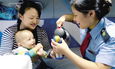 “素萍服务室”还有八名工作人员,她们都是24小时值班,一天三班倒。“旅客就像我的家人一样,在工作岗位上过节,我们一样温暖幸福。”李素萍说。