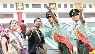 执勤中,武警官兵广泛开展“有困难,找武警”活动,为驻地群众和中外游客提供各种服务。特勤大队战士张海涛说:“作为一名武警战士,能为人民群众安定祥和欢度节日执勤站岗,我感到很幸福。”