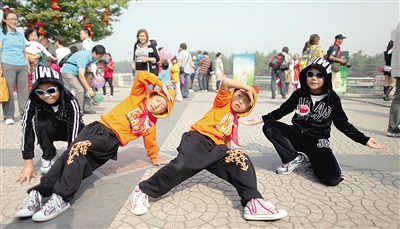 与家人一起来游园的李金铭被这欢乐祥和的氛围所感染,在舞场旁驻足。“人们跳得很有激情,看的人更振奋。”李先生说。