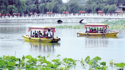 10月4日,游人在北京北海公园乘船游览。“两节”长假旺盛的出游需求带来了游客潮的大集中,北京各大公园到处摩肩接踵,人潮涌动。
