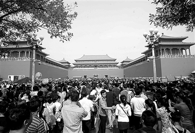 10月2日,北京故宫午门前游人如织。