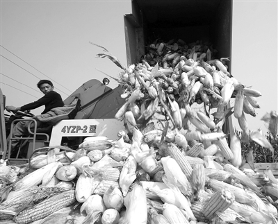 10月8日,玉米收割机在山东省临沂市郯城县郯城街道官路东村收获玉米。