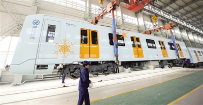 国内首批耐高寒地铁列车从中国北车长春轨道客车股份有限公司启运,日前顺利抵达哈尔滨,将用于哈尔滨地铁1号线。图为10月13日拍摄的即将启运的首批耐高寒地铁列车。据介绍,这款车由长客股份公司依照哈尔滨的气候和运行条件“量身打造”,具备防雪、耐寒性能,可在零下38摄氏度的低温环境下持续运行。