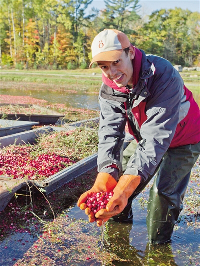10月12日,在加拿大安大略省穆斯可卡地区的巴拉社区,一名工人手捧着刚收集的蔓越莓。每到蔓越莓成熟的10月,加拿大各产区的“蔓越莓节”陆续登场,吸引着天南地北的游客。 新华社发