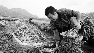 目前,山东省乳山市两万多姜农又迎丰收年。乳山市组织大姜生产加工和出口销售企业及专业合作社以保护价收购鲜姜,引导姜农分批出售,合理窖存,降低风险。