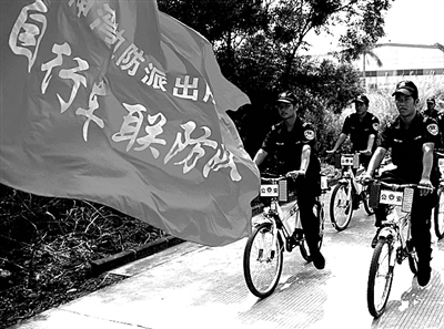 近日,广东公安边防总队中山边防支队神湾边防派出所组织驻地工厂保安和村治保会联防队员成立自行车联防队,充分发挥自行车快速、灵活、机动的特点,深入村庄、厂区、商铺开展安全防范教育,提高群众的自我防范意识。李松林摄