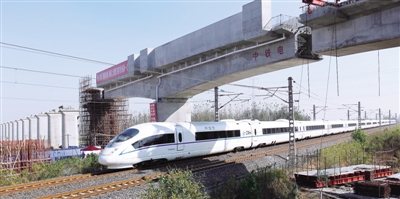 10月23日0时20分,海(天)青(岛)铁路上跨胶济客运专线箱形连续梁在山东省潍坊市高密市成功实现转体。转体施工期间该区段胶济客运专线中断运行100分钟。