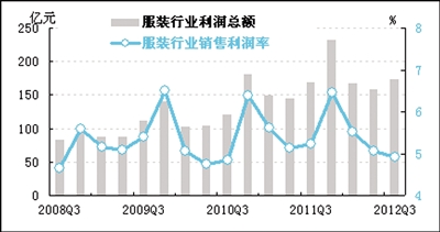 经计算,三季度服装行业销售利润率为4.9%,较上季度降低0.2个百分点,连续3个季度趋于下降,且低于本季度全部工业5.3%的平均水平。