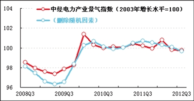 2012年三季度,中经电力产业①景气指数为99.7(2003年增长水平=100),比二季度回落0.1点,回落幅度收窄,显示电力行业景气度缓中趋稳。
