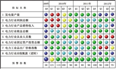 今年前三季度,受用电量需求增速持续回落的影响,电力行业发电量指标均运行在偏冷的“浅蓝灯”区。电力工业品出厂价格总水平涨幅回落,由“红灯”变为“黄灯”。用电需求增速的减缓、价格总水平涨幅回落又导致产品销售收入由“浅蓝灯”变为“蓝灯”。与此同时,利润总额和税金总额仍然在正常的“绿灯”区域,这与电煤成本价格的持续下滑有关。