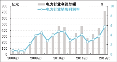 三季度电力行业利润总额同比增速继续回升。经初步季节调整,三季度电力行业实现利润总额715.2亿元,同比增长52.8%,增速比上季度上升30个百分点,达到较高水平。